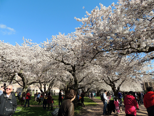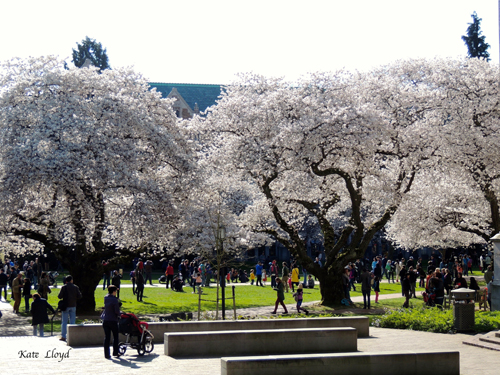 I’ve always thought yellow is the color of spring, until yesterday morning. After attending church, I strolled over to the University of Washington with friends in hopes of seeing blooming cherry trees. Entering the campus, we were met with stark, dormant branches. Even with blue skies, a chill dominated the air. One of the men accompanying us, from upstate New York, said his weatherman had predicted 14 inches of snow by Tuesday.