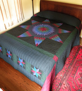 On our most recent trip to Lancaster County, my husband and I once again visited Emma to purchase another queen-size quilt. This time, my husband helped me do the choosing. The pattern is Lone Star. I’ve kept it carefully out of sight so he and I wouldn’t be tempted to use it ourselves. When Emma phoned me several days ago, I told her my plan was to give this second queen-size quilt away, too. A long pause ensued; I’m sure she was wondering if I’d lost my mind. I assured her we’d be back to buy another. PS: No electricity is used in her home or shop.