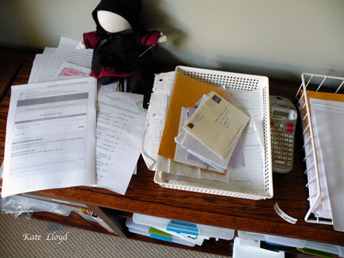 Day after day, letters and papers arrive in the mail needing to be sorted, but get stacked in a pile. The counter accumulates crumbs, as does the floor, and dishes gather in the sink because the dishwasher is full from the night before. After my AM walk, I tackle a load of laundry and do a quick cleanup of the kitchen when my biggest challenge dwells one floor above me: my writing space.