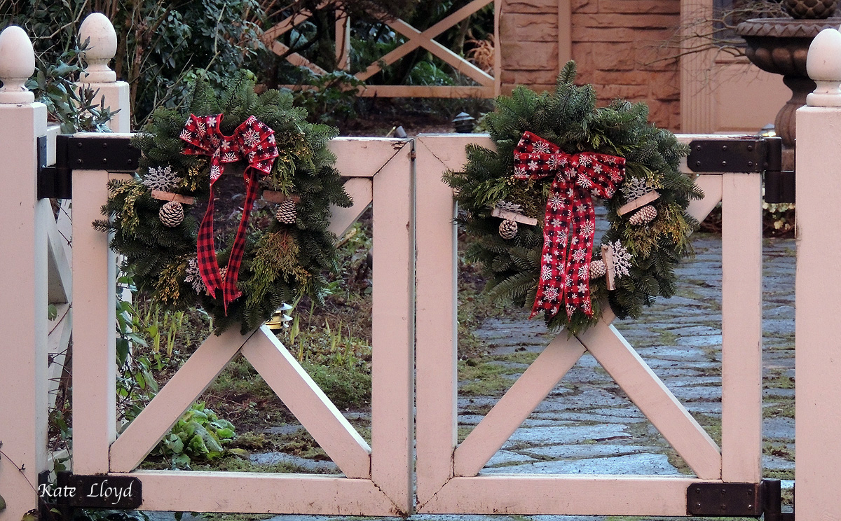 not too much stress this year….shopping almost done…looking forward to spending Christmas with family and dear friends…kinda low key this year…your table runner would look awesome on my table…and I love the bows on your gates….Merry Christmas Kate!